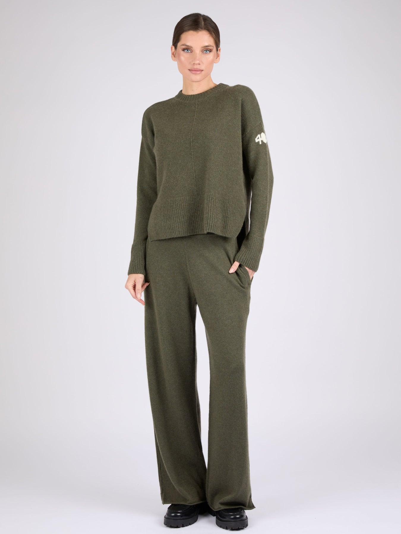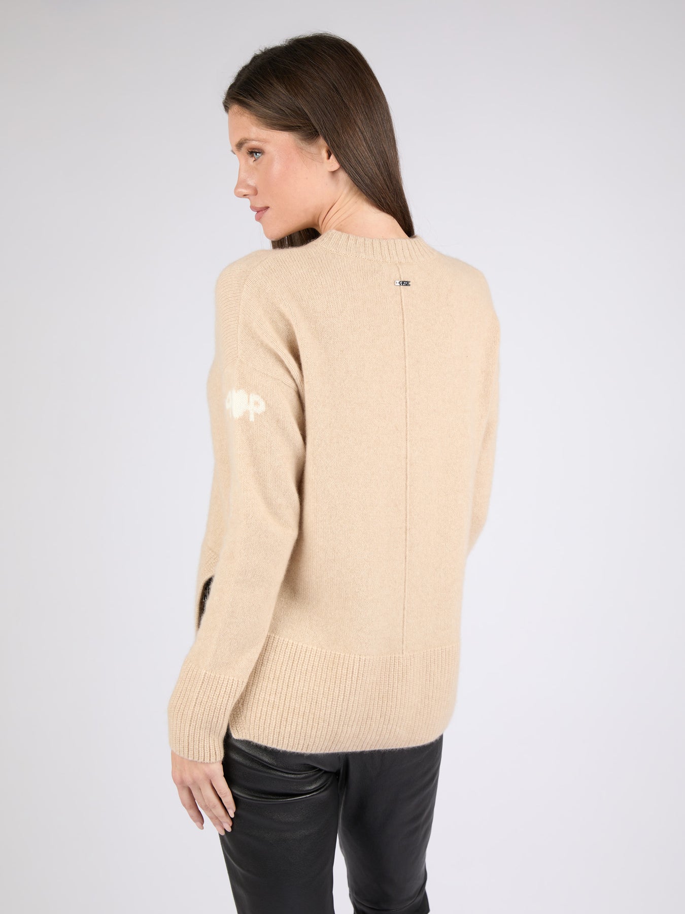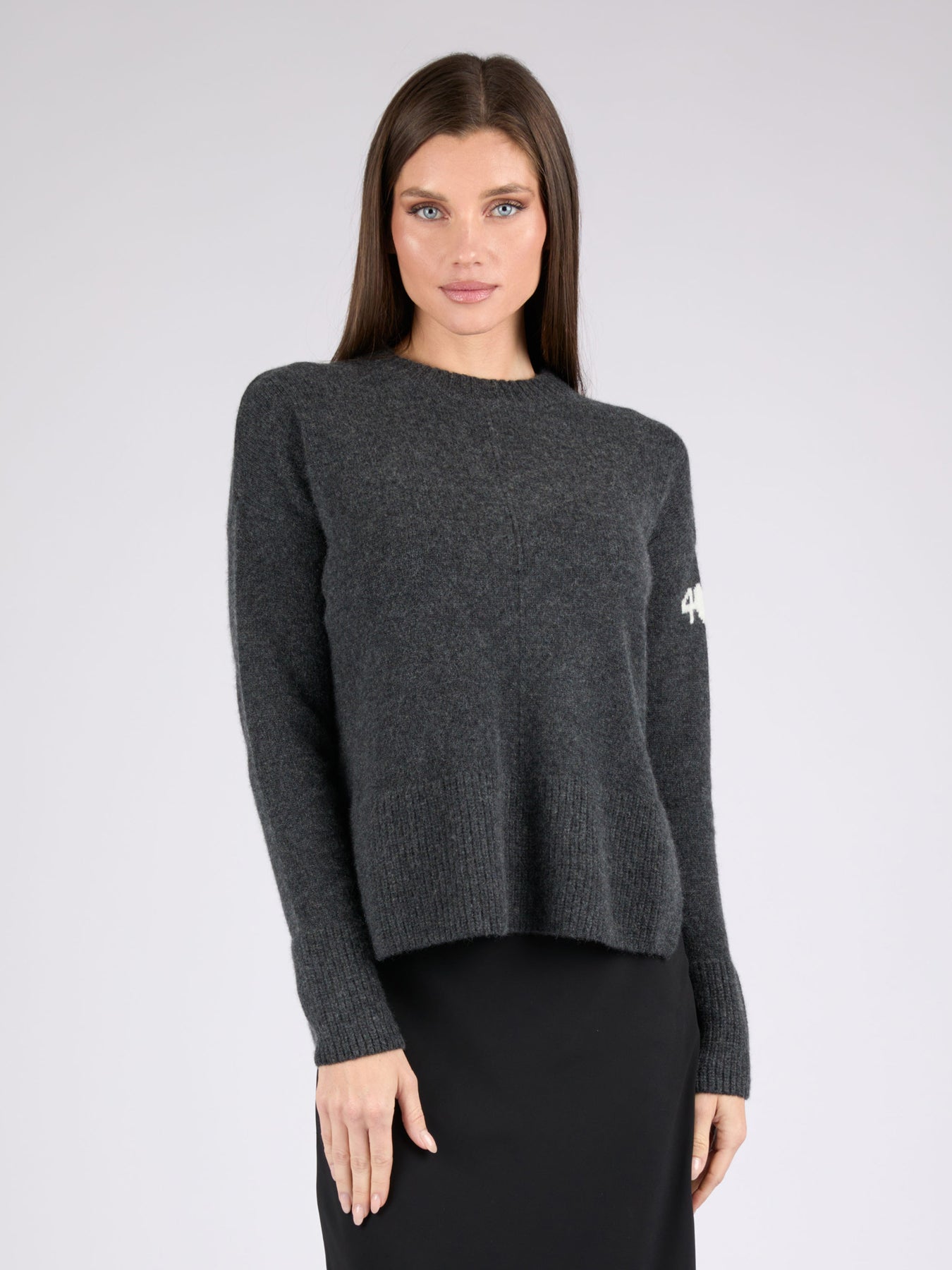 Experience unparalleled luxury with the LAAX PULLOVER, crafted from 100% sustainable/organic Mongolian cashmere. This modern crewneck features a substantial 280-gram, 2-ply 7-gauge knit that balances warmth and elegance. Thoughtful details include a raised center seam on both front and back, a flattering high-low waist length with large ribbed finishing, and side slits at the bottom rib for ease of movement, and delicate logo intarsia on the upper left sleeve. This pullover embodies refined comfort with conscious craftsmanship.