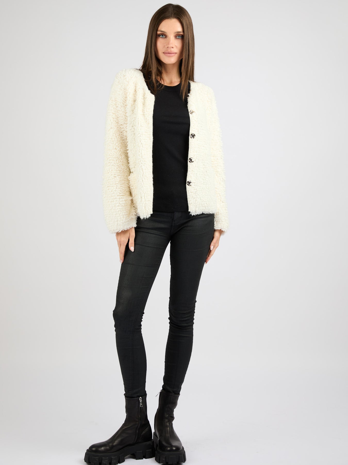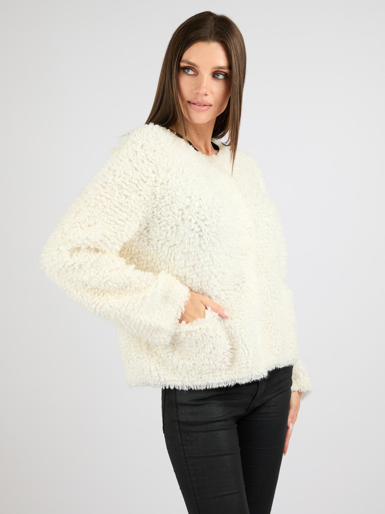Classic Cashmere Cardigan with a Textured Fur Effect