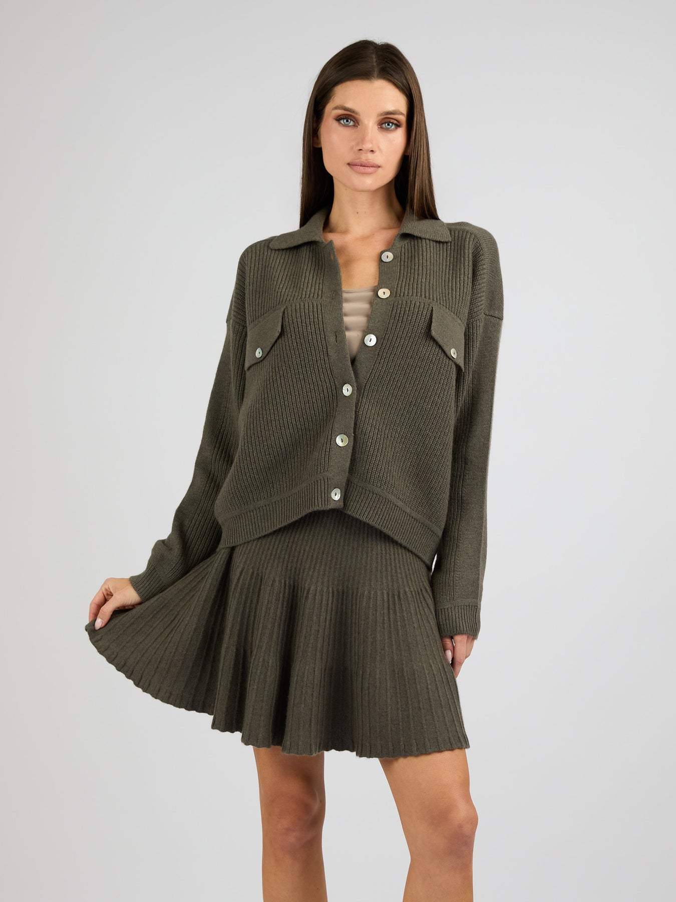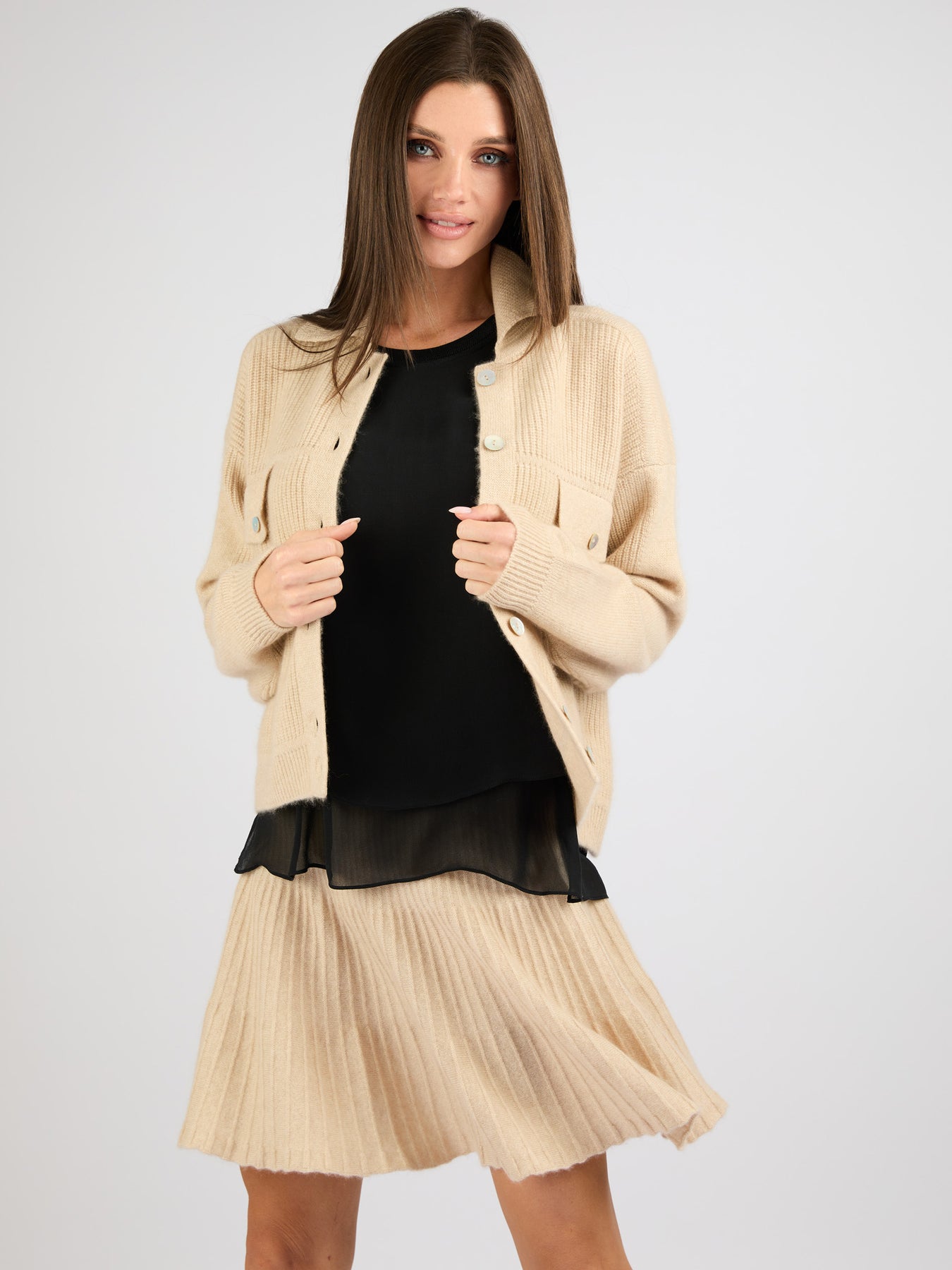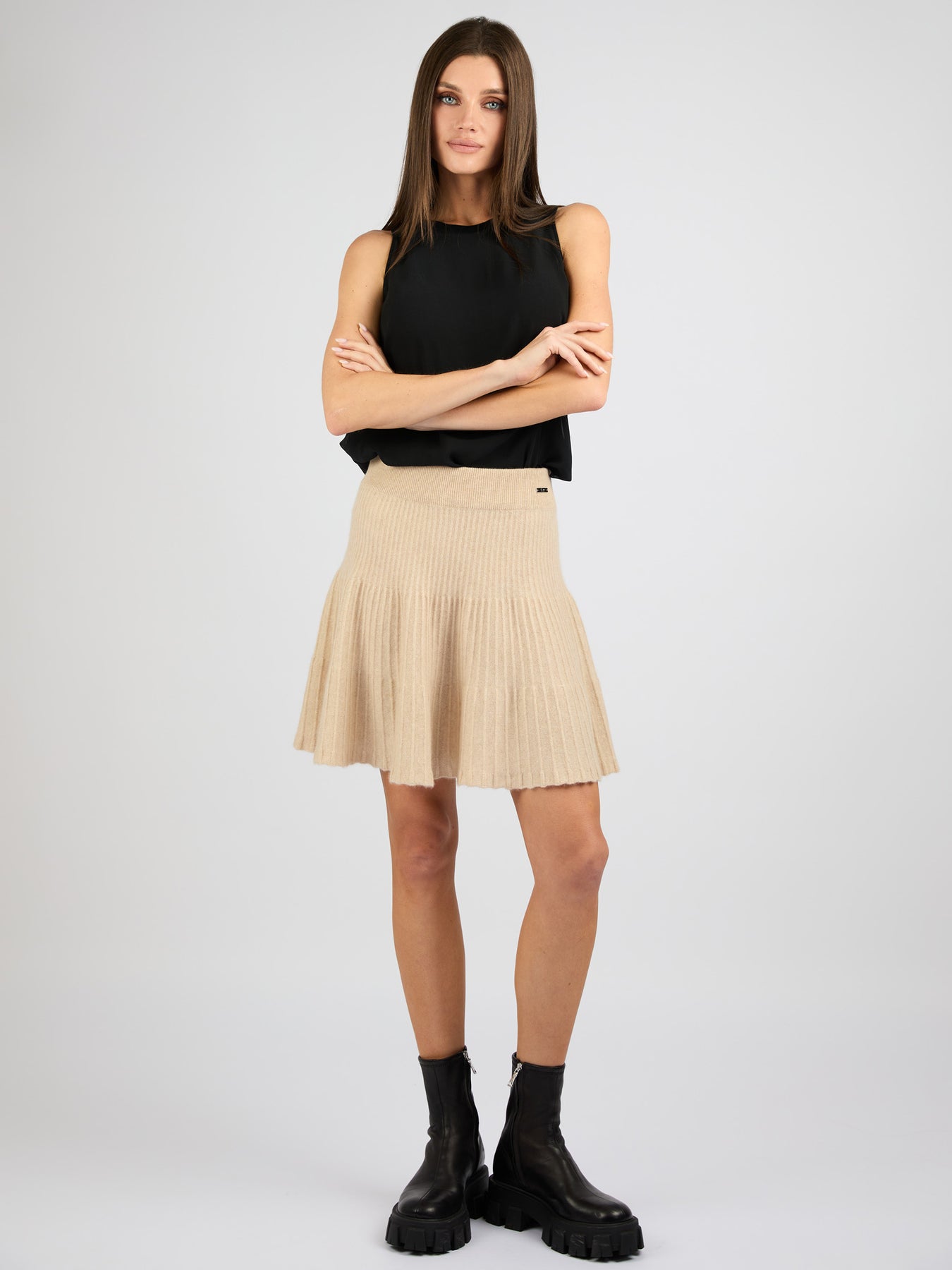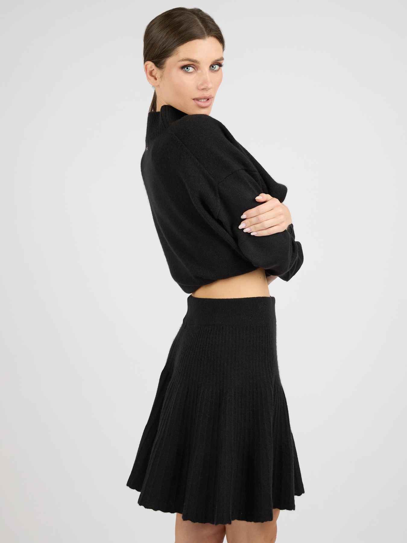 The WHISTLER SKIRT offers a fun yet refined silhouette with its short A-line design and flowing movement, crafted from 12-gauge, 1-ply 100% Mongolian cashmere at 155 grams. Featuring a comfortable elastic waistband and vertical open rib construction, it moves gracefully with you. Its feminine elegance pairs seamlessly with any of our tops or can enhance your existing wardrobe with understated sophistication.